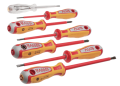 Set VDE odvijača 1000V, 8/1 – ergonomske višekomponentne drške, anti-roll; Cr-Mo-V sečiva s black tipom, ubrizgana izolacija IEC 60900; ležište za bit NWS