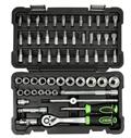 "Garnitura se sastoji od :Ključevi nasadni 3/8"" : 6,7,8,9,10,11,12,13,14,15,16,17,18,19,20,21,22,23 mmReverzibilna ručica prihvat 3/8""Produžetak 3/8"" dužine 75 i 150 mmZglobni adapter 3/8""Bit PH3, PH4Bit PZ3, PZ4Bit inbus 7,8,10,12,14 mmBit ravni 8,10,12mmKlizna T ručicaAdapter za bitoveOdvijač nasadni 1/4""Ključ nasadni 3/8"" PH1, PH2Ključ nasadni 3/8"" PZ1, PZ2Ključ nasadni inbus 3/8"" 3, 4, 5, 6mmKljuč nasadni ravni profil 4, 5.5, 6.5mmKljuč nasadni Torx 3/8"" T8, T10, T15, T20, T25,T27,T30"