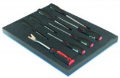 Garnitura se sastoji od:-Ravni odvijači 5,5x75 mm, 6,5x100 mm,6,5x150 mm, 8x150 mm.-Krstasti odvijači 1x75 mm, 2x100 mm, 3x150 mm.-Alat za vađenje žabica.